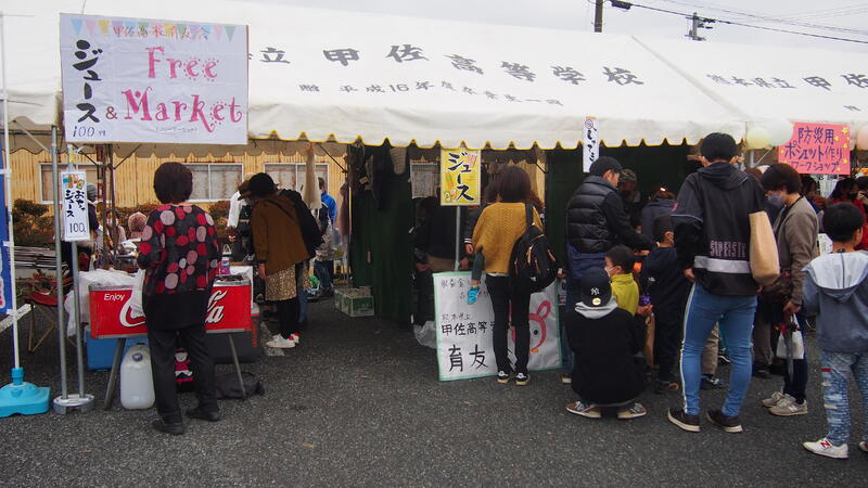 甲佐高校は育友会のフリマとドリンク販売、輪投げゲームや有志の生徒による手作りガチャガチャなどのテントブースと美術部による作品の展示などの参加でした。