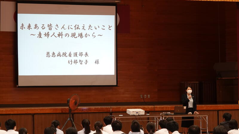 9月29日(金)、慈恵病院、看護部長竹部智子様をお招きし、「未来ある皆さんに伝えたいこと~産婦人科の現場から~」と題して、御講演いただきました。