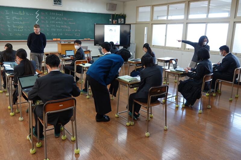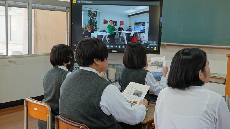 10月12日(木)放課後、フィンランドのPihtipudas Lukio(ピフティプダス ルキオ)高校とオンラインでの交流会を行いました。本校生徒10名、フィンランドの生徒9名が参加し、お互いの高校の紹介、自己紹介、質問コーナーと、英語でやりとりしました。生徒たちは、「とても緊張したけど楽しかった」と感想を述べてくれました。