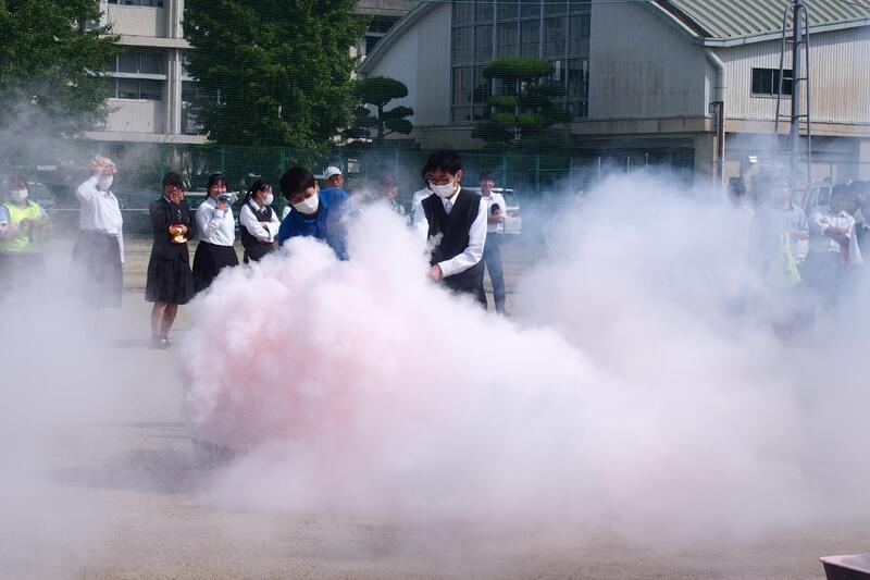 10月11日(水)10時から約2時間、甲佐町横田地区の住民の方、若草保育園、松橋西支援学校高等部上益城分教室と連携して、震度6強を想定した避難訓練を実施しました。学校運営協議会の運営委員の方々にも見学していただきました。本校生においては、教室からグラウンドへの避難。その後、避難住民等の誘導、避難者名簿の作成、消火器を使った消火訓練を行った後、教室で訓練の振り返りを行いました。