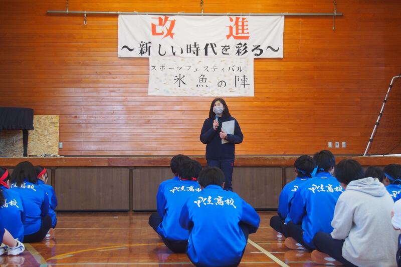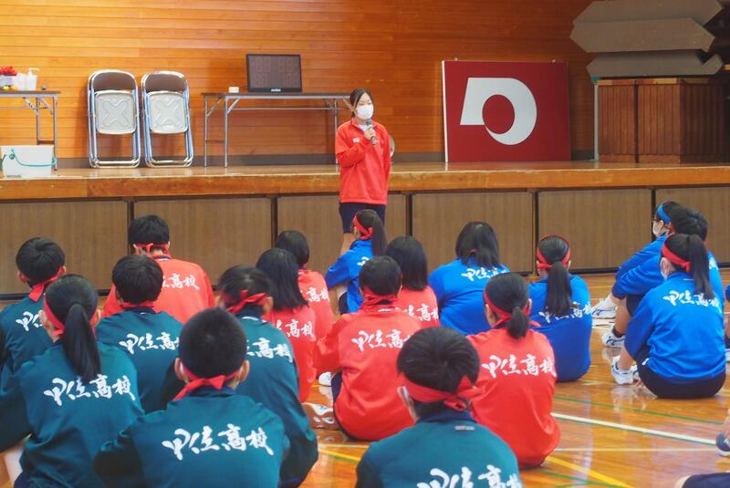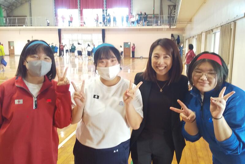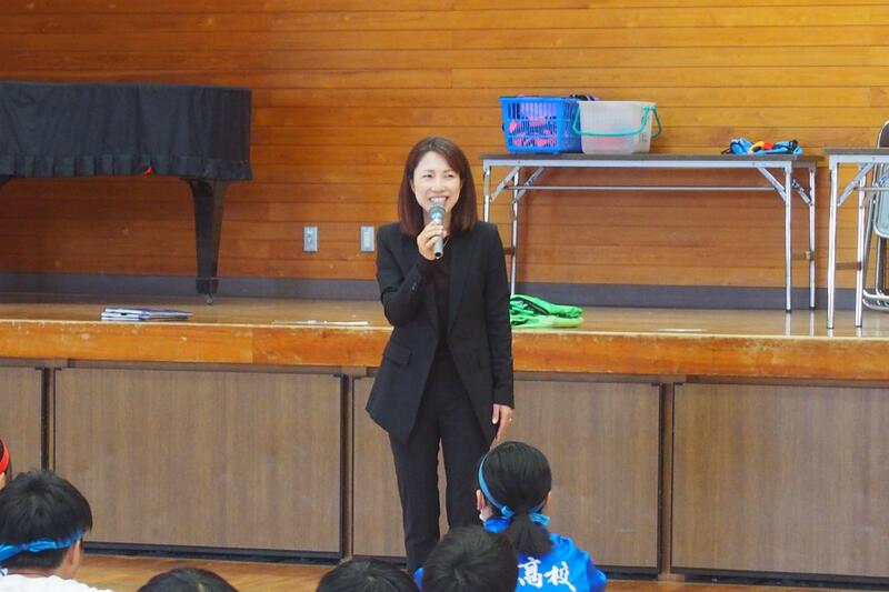 10月17日(火)午後、スポーツフェスティバル~紅葉の陣~のバスケットの練習を行いました。開始前に、県議会議員杉嶌ミカ様から生徒に「夢をあきらめない、夢をかなえる」勇気を頂く話をしていただきました。杉嶌様(singer song writer MICA さん)には、本校文化祭でコンサートを依頼していましたが、公務と重なり文化祭への参加ができないため、生徒の激励のため来校されました。お話を聞いて、生徒も大変喜んでいました。また、同期の県議会議員斎藤陽子様にもおいでいただき、生徒の様子を見ていただきました。