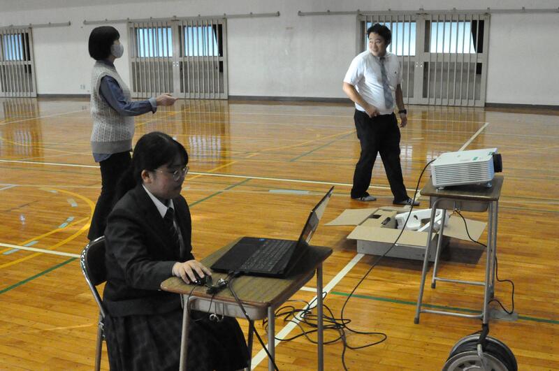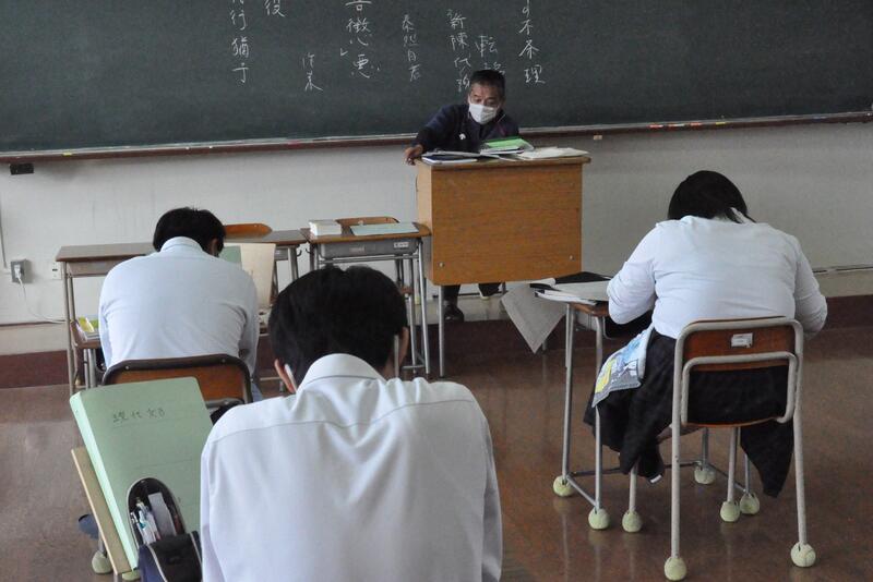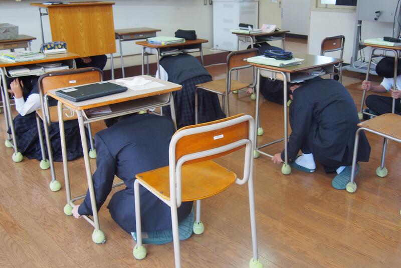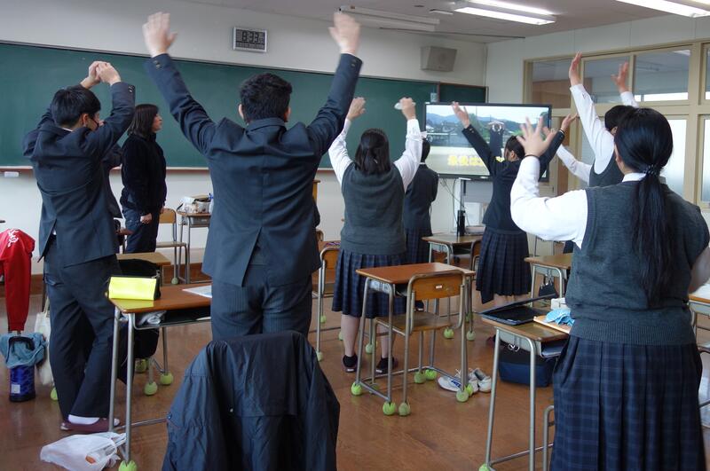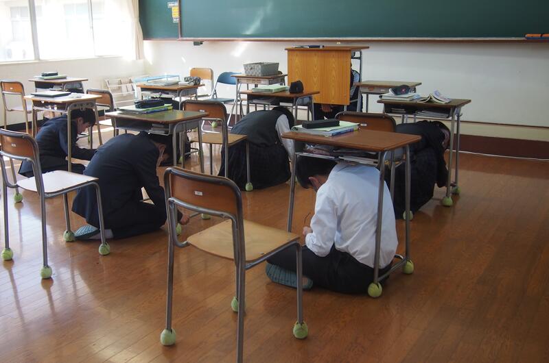 11月5日の『津波防災の日』に関連して11月2日に気象庁が実施する「緊急地震速報配信」と10月21日に熊本県が実施する「シェイクアウト訓練」に合わせて、防災意識の高揚を図るとともに、地震の際に取るべき行動を確認するため、本校では11月1日ブラインド方式でシェイクアウト訓練を実施しました。生徒は、真剣に取り組んでいました。