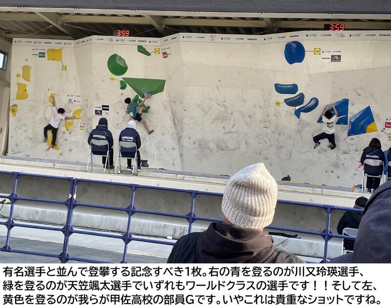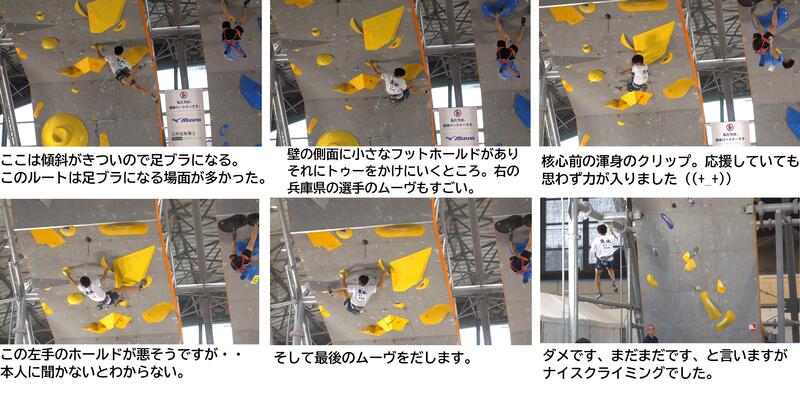 ボルダー、リード共に全国で戦うにはやっぱりまだまだ実力不足でした。自信があったボルダーも去年と完登、ゾーン数も同じで順位も去年と変わらず目標にしていた決勝進出には届きませんでした。