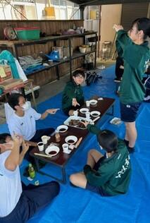 11月4日(土)甲佐レオクラブの活動として、役場周辺から甲佐高校までの道路周辺の清掃活動を行いました。終了後、甲佐町ライオンズクラブの計らいで、昼食にバーべキューを実施ていただきました。また、本校卒業生で生徒会のOB、OGも参加していただきました。