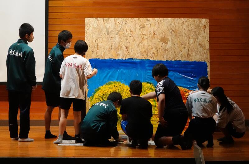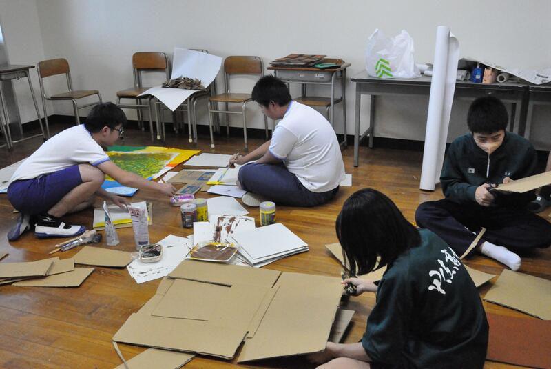 甲佐高校生徒会と松橋西支援学校高等部上益城分教室生徒会が青垣祭へ向けて合同で準備を行いました。