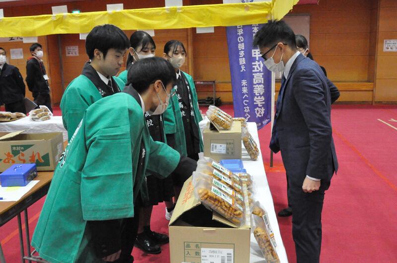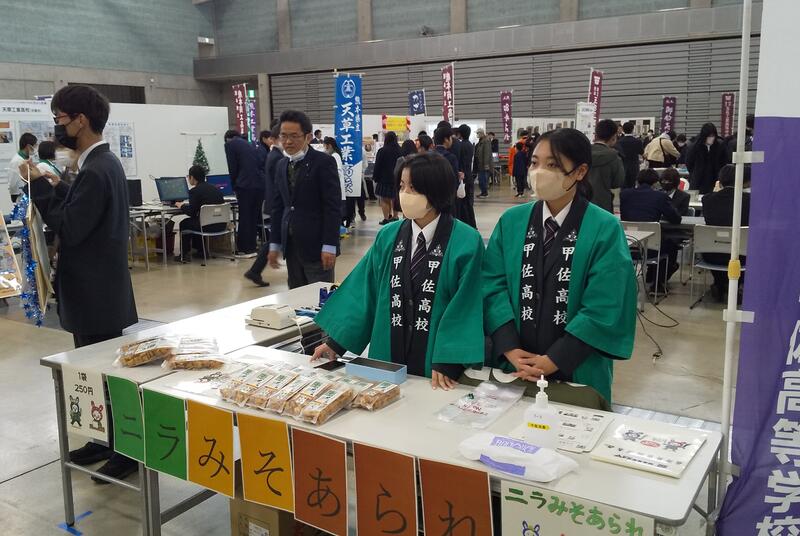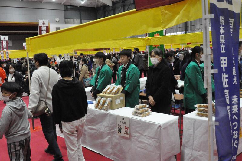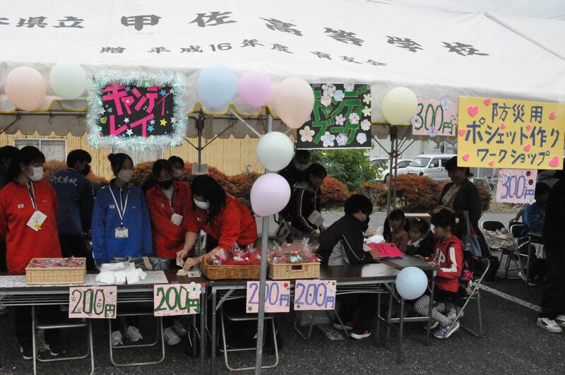 11月12日(日)甲佐高校では、甲佐町の産業文化祭へ参加し、3つのグループによる店舗販売を体験しました。また、PTAによるFree Market やボルダリング部による体験コーナー、美術部による甲佐町文化祭への作品展示、音楽部によるステージ演奏等を行いました。