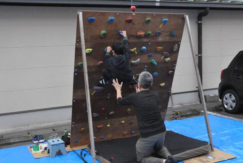 1日目、ボルダリング競技予選の様子です。全4課題を2つに分けて、2課題ごと5分の休憩をはさんで5分の制限時間で登り、完登数などを競います。