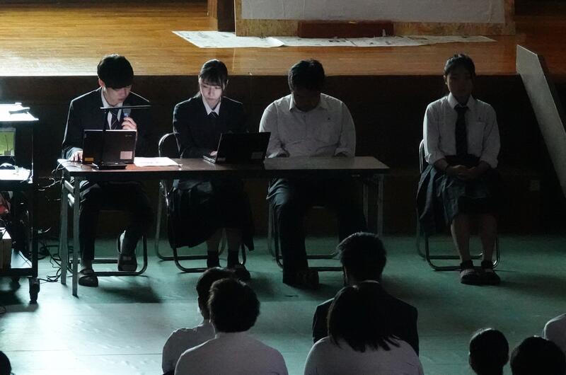 二人の対戦を、この大会に参加した生徒たちと応援する生徒達が見守ります。