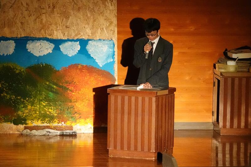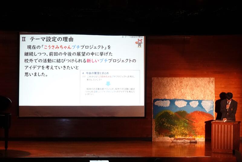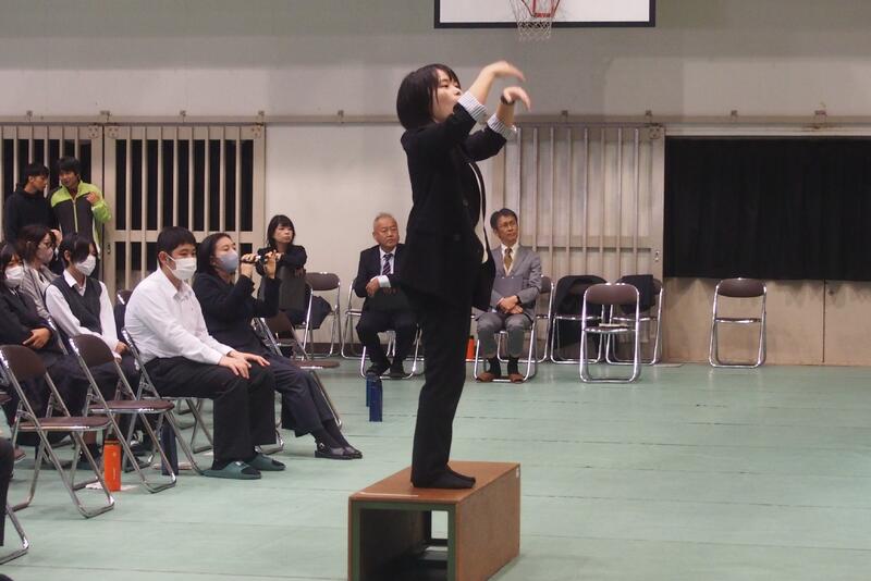 「・・・昨年度よりさらに進化した青垣祭にしたいと思います。(中略)それぞれ練習時間が少ない中、真剣に頑張ってきました。生徒会の出し物や展示などみんなで協力しながら作り上げました。今年もみなさんに笑顔と元気を届けられるように頑張りましたので、ぜひ楽しんでください」