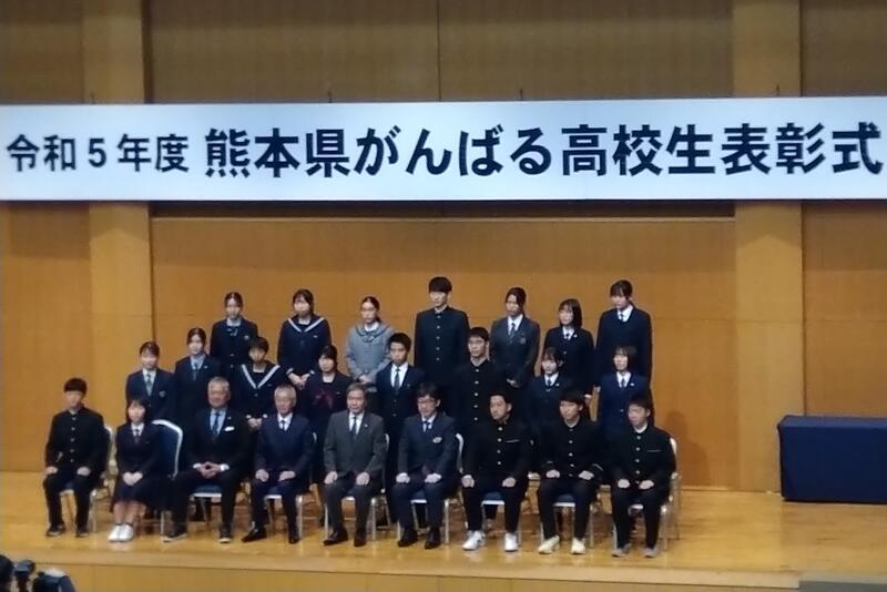 11月16日(木)熊本県がんばる高校生表彰式が熊本テルサで行われ、3年2組の須藤さんが蒲島知事から表彰状を頂きました。
