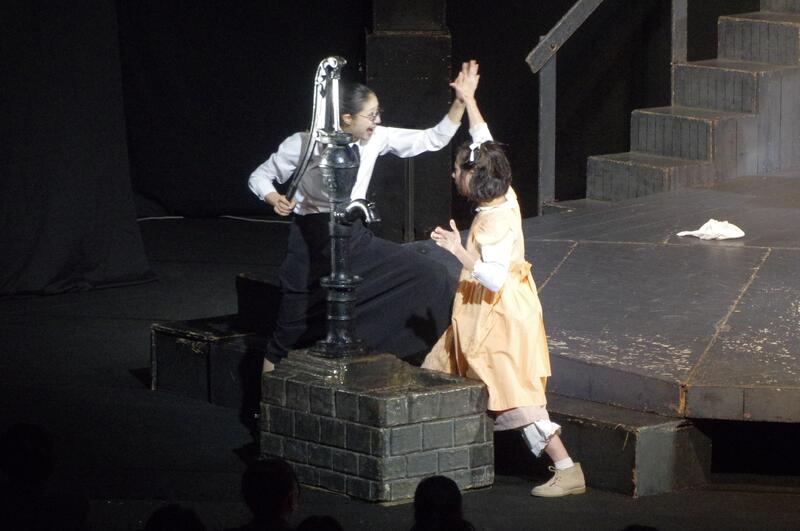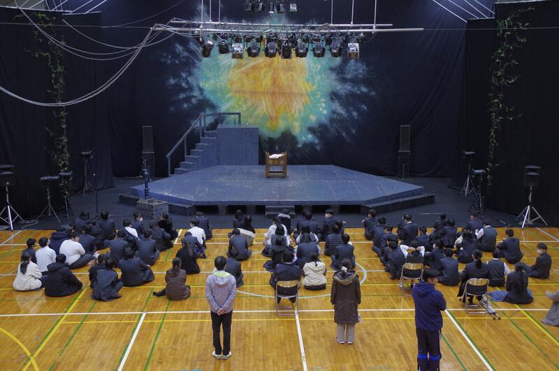 11月28日(火)東京演劇集団 風 による「ヘレン・ケラー ~ひびき合うものたち」の公演を本校体育館で鑑賞しました。本格的な舞台装置が体育館フロアにでき、わくわくした気持ちで始まりを待ちました。事前学習で興味を深め、皆真剣な表情で演劇を鑑賞していました。休憩時間には、舞台セットに触らせてもらうことができました。終了後、2年1組の島田さんが代表で感謝の言葉を伝え、主演のお二人と握手をしました。