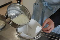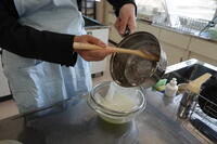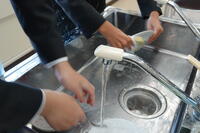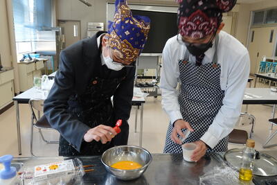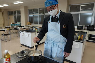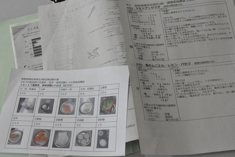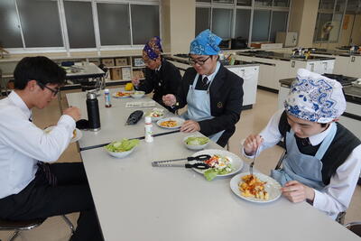 本日は、3年生の家庭科(フード)の授業の様子を紹介します。本日の授業は、今月実施される「食物調理技術検定3級」の試験に向けた実習です。限られた時間の中で、手早く慎重に取り組んでいます。