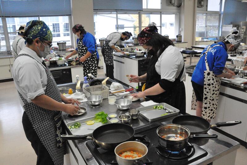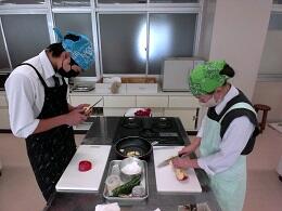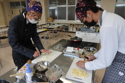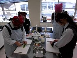 作るものの関係上、二班に分かれて調理を行いました。