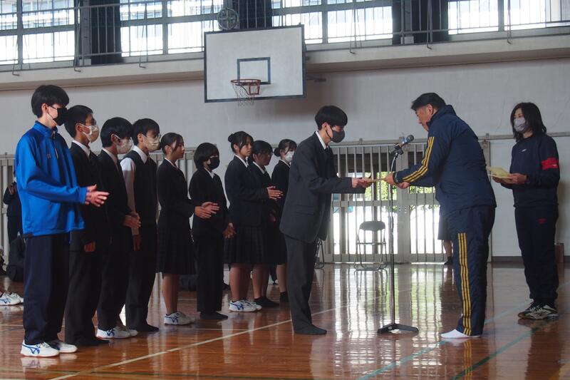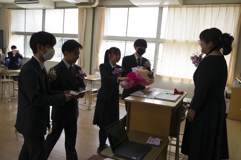 その後、生徒会から転退任される先生方へ花束の贈呈が行われました。