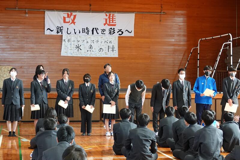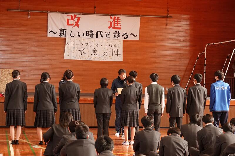 今年度も楽しい青垣祭になりました。いつも「昨年度を越えよう!」を目標にしていますが、本当に年々生徒たちが楽しみ方を覚えてきたというか、発想がどんどん大胆でおもしろいものになるというか…。基本的に生徒が出してきたアイデアは必ず実現させようと思っています。難しいからやらない、ではなく、どうしたらできるか、をこれからも一緒に考えていきたいと思います。甲佐高校は「夢を実現させる」学校なので、青垣祭は一番思いきったことができる場としていろんなことを実現してほしいなと思っています。県内で有数の人数が少ない学校です、一番楽しい文化祭をやりましょう!