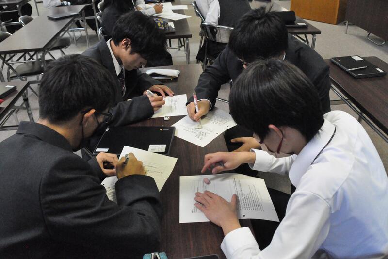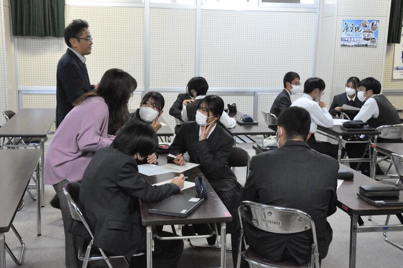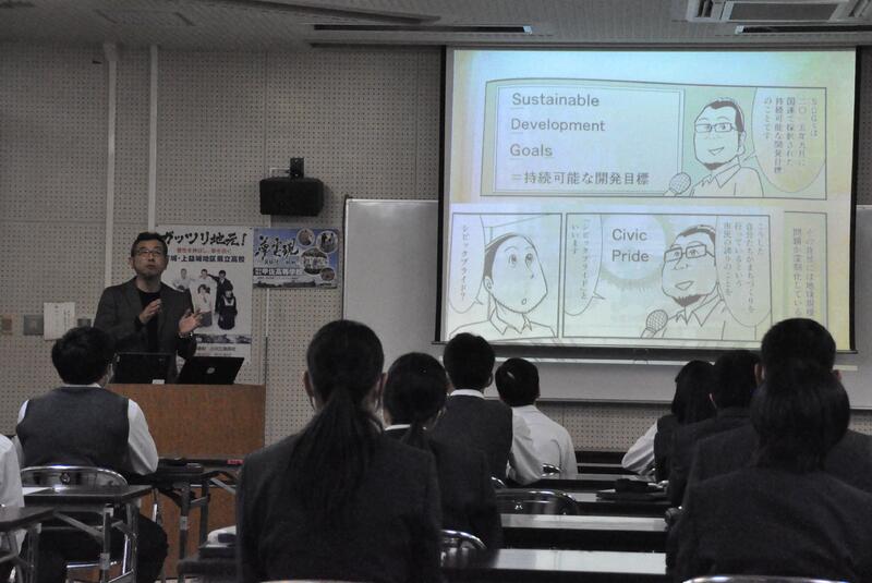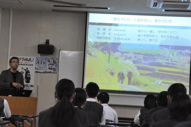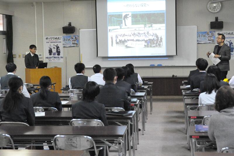 本日5限目、熊本大学工学部土木建築学科の田中尚人准教授に来校していただき、「陣ノ内城跡について」講演をしていただきました。また、グループで話し合った甲佐町への提案について、質問や助言を頂きました。
