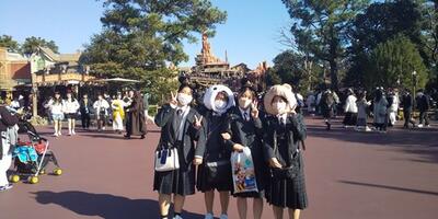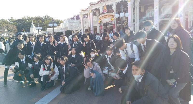 12月14日(木)修学旅行団は、全員朝食を取り元気にディズニーリゾートへ到着しました。.