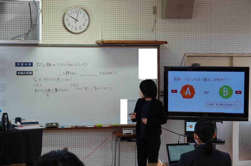 12月14日(木)2限目に1年3組の授業で音楽オペラ「カルメン」についての研究授業を行いました。