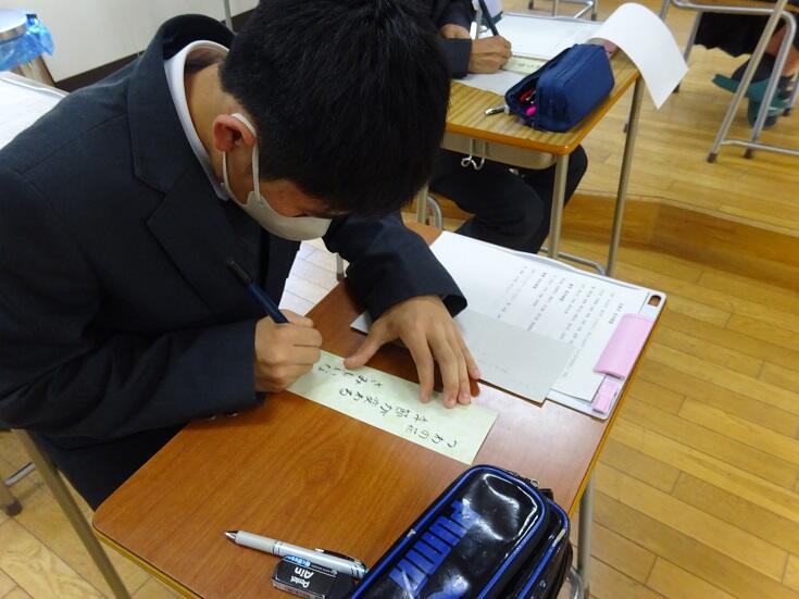 箏の班と入れ替わる形で、冬の季語を取り入れた俳句作成を行いました。題して「俳句早作り大会」!なんと1年生全員がたった10分ほどの時間内に一句作成しました!これには担当のO野も本当に驚きでした。