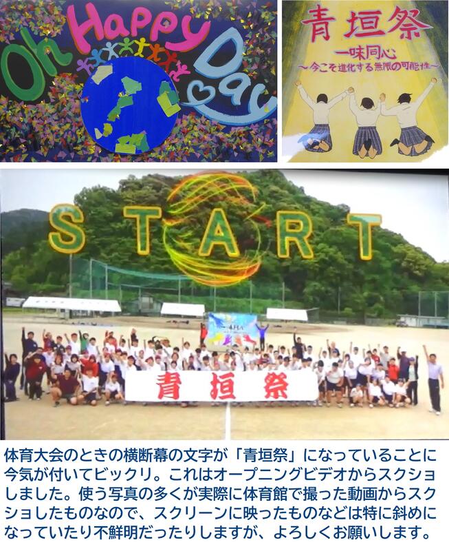 いや、すごい青垣祭でした。終わって2カ月たってこうやってまとめてみて、あらためてすごいなあと思いました、自分の学校ながら。先生方、特に生徒会担当の4人の先生方の「企画力、プロデュース力、実行力」がすごい。さらにそれについて行くというか期待に応えてくれる生徒たちが素晴らしいなあと思いました。毎年期待値を超えていきます。何度でも言います、ヤバいです。
