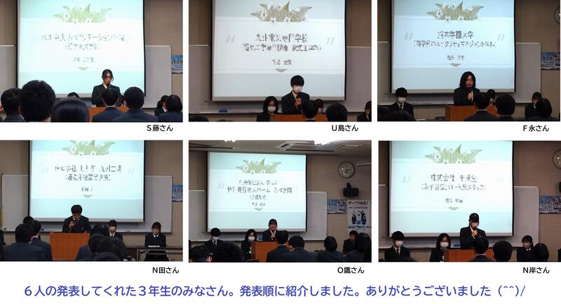 6人の先生方から、生徒に向けてメッセージが送られました。