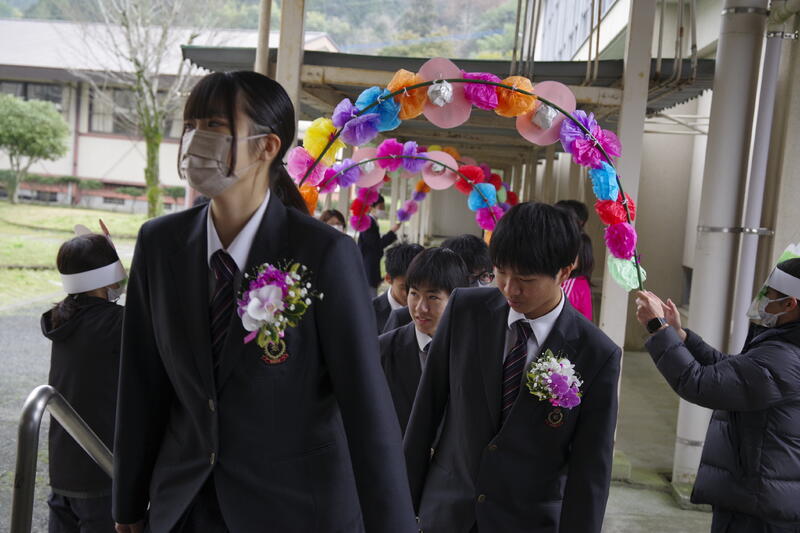 退場時は、在校生・職員・卒業生で花道を作り、そこを通られました。