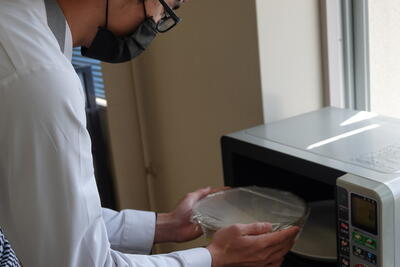 『大江薫さん(84歳)は、朝、目が覚められて部屋着に着替えた状態でベッドで仰臥位で休まれています。リビングに向かうために上着を着て身支度を整え、車いすへ移乗し、リビングへ移動する支援を行ってください。大江さんは「うなずく」「はい」「指差し」のみです。《制限時間7分》』