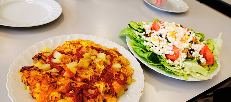 作ったものは、「スパニッシュオムレツ」と「カッテージチーズを使用したサラダ」です。