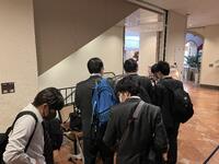 午前中は2学年とも熊本大学を訪問し、大学の概要説明、大学内散策、学食でのランチタイム体験をしました。あいにくの雨のため、大学内散策はほんの少しでしたが、生徒たちは興味津々で見学していました。