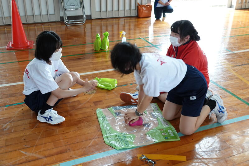 感染症予防対策のため、3年生は高校になって初めての現場体験でした。