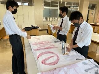 生徒会執行部の生徒が、体育大会に向けて旗作りをしました。