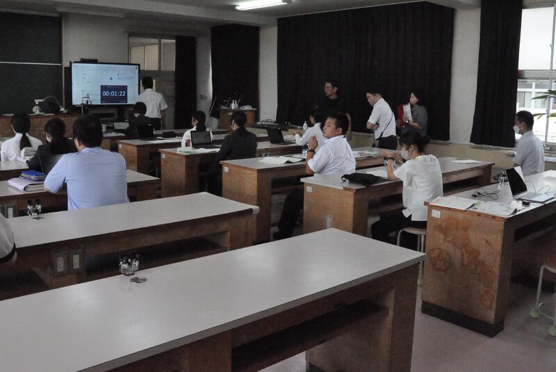 本日、熊本県立教育センター主催の初任者研修(理科)が本校で開催されました。2限目には、1年1組の授業で研究授業が行われました。いつも通りのICTを活用した生徒参加型の素晴らしい実践でした。