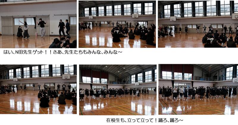 3年生は大興奮、「ヤバいヤバい」「かわいい!」「マジ、かわいい!」、教頭先生のダンスを見て「髭ダンス、あれ髭ダンスじゃ!」(え? し、知ってるんだ・・・教頭先生と顧問Fは同世代・・・)
