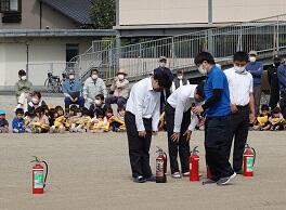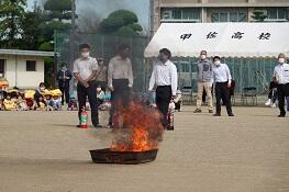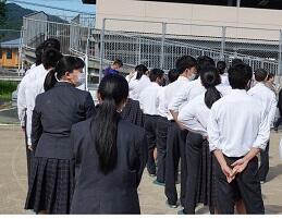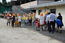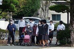 10月12日(水)に地域と連携した防災・避難訓練を行いました。甲佐高校と松橋西支援学校分教室、若草保育園、地域の方と合同で実施しました。