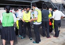 避難してこられる地域の方や若草保育園のみなさんを誘導するために、生徒たちがそれぞれ準備をします。