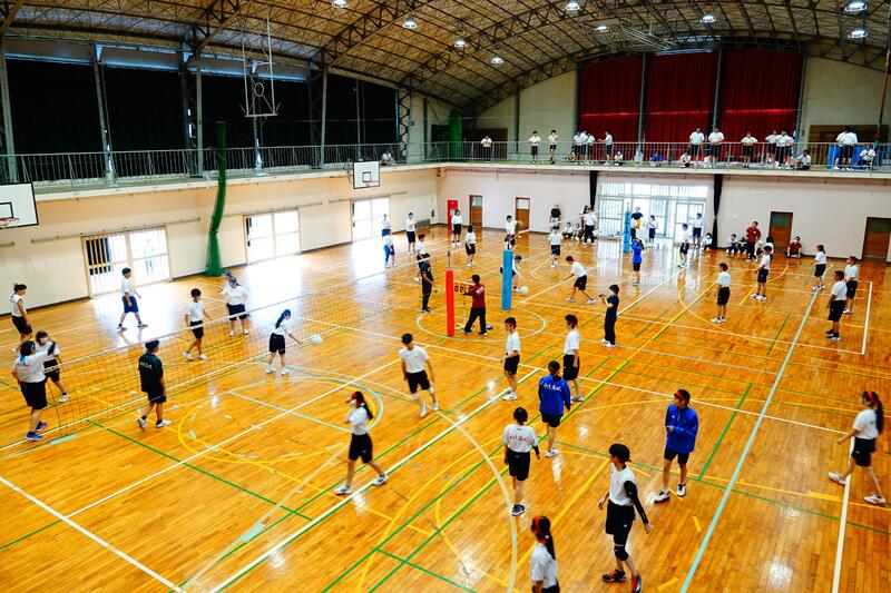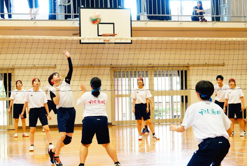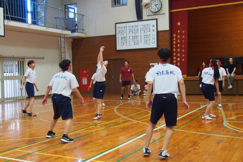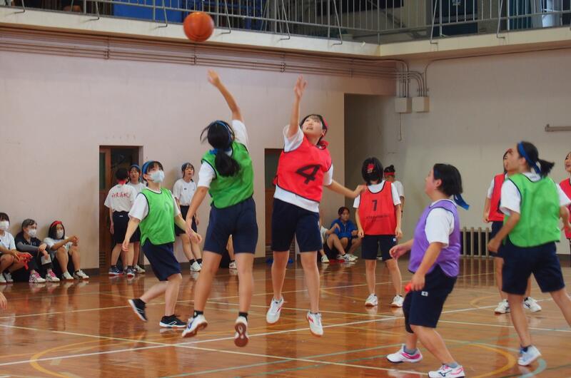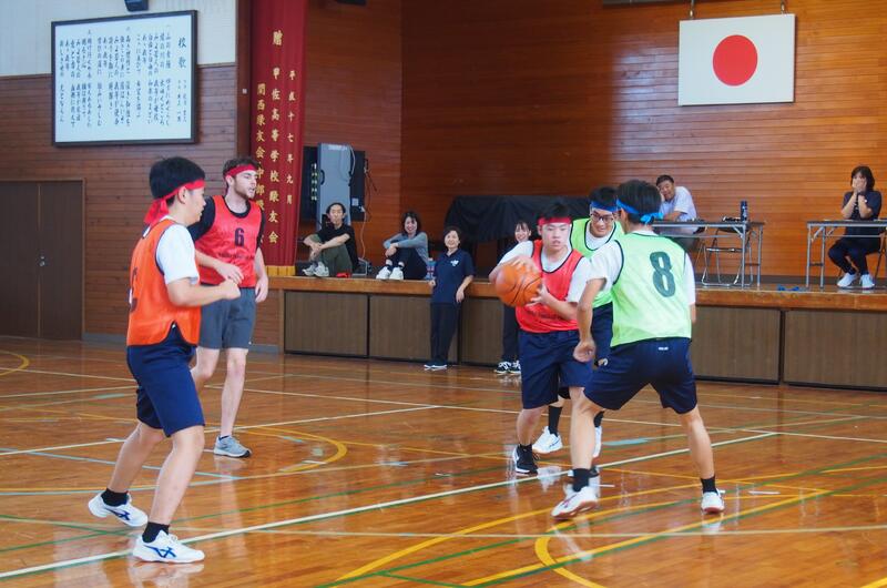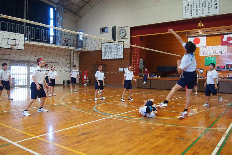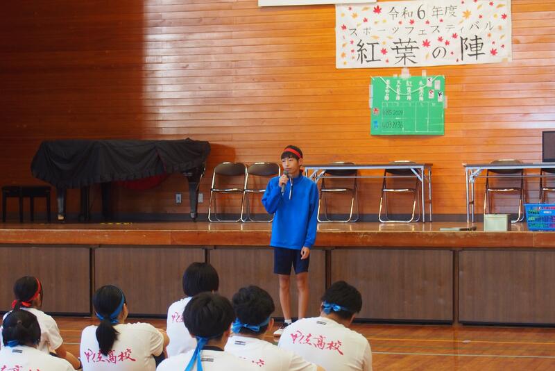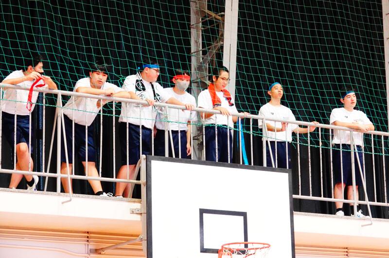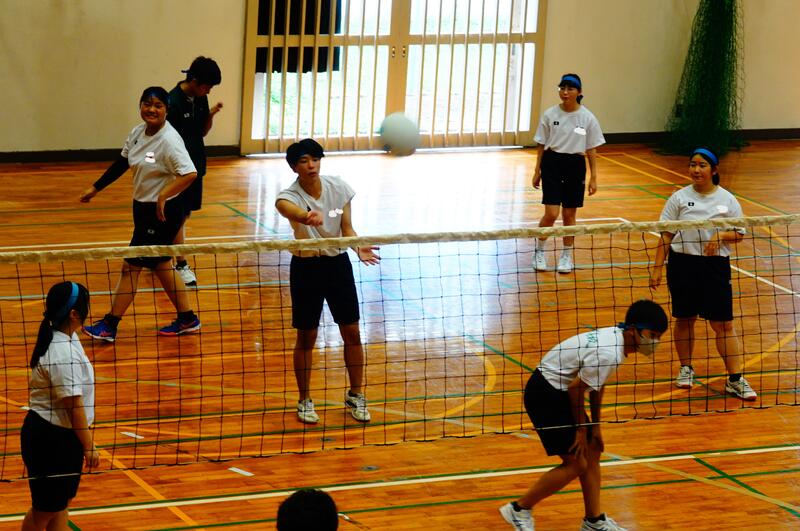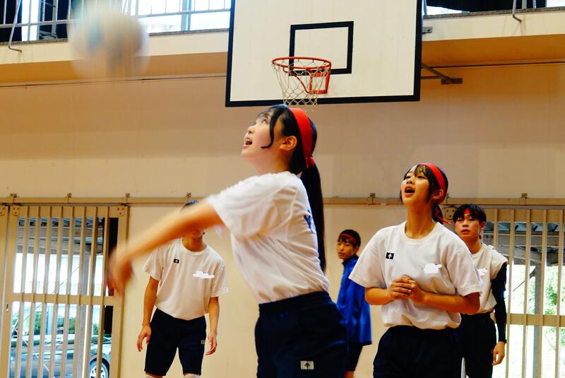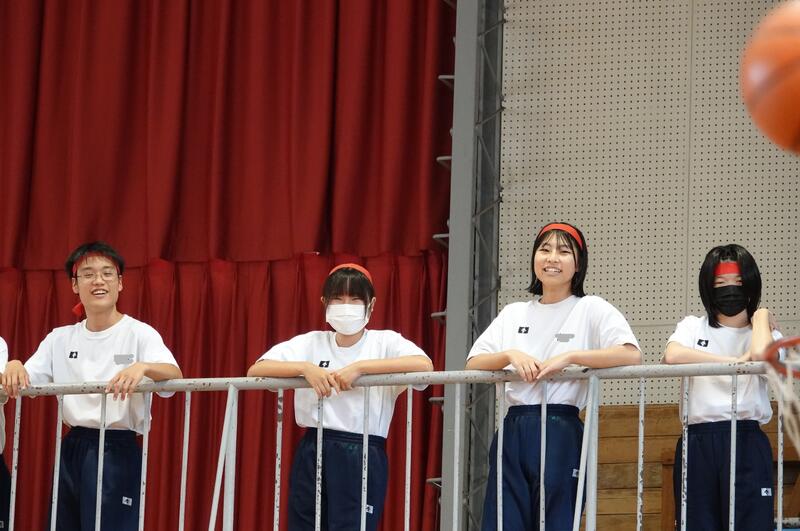 10月18日(金)スポーツフェスティバル(紅葉の陣)として、午前中にバスケットボール、午後にソフトバレーボールを行いました。午後の最後に選抜チームでの9人制バレーボール対決を行い、勝った青団と職員チームの試合が行われました。