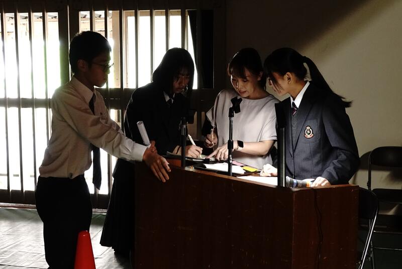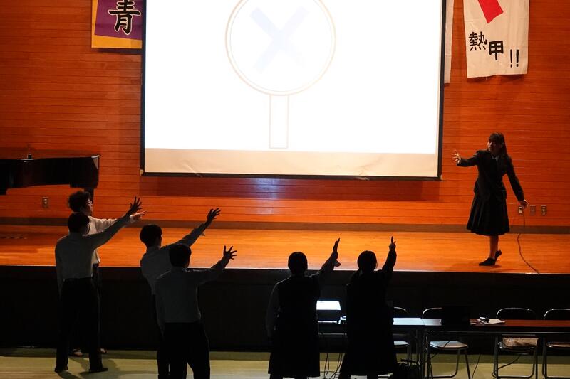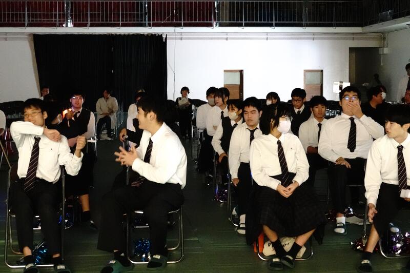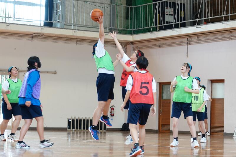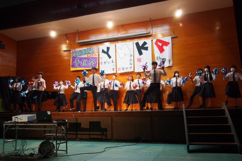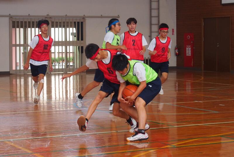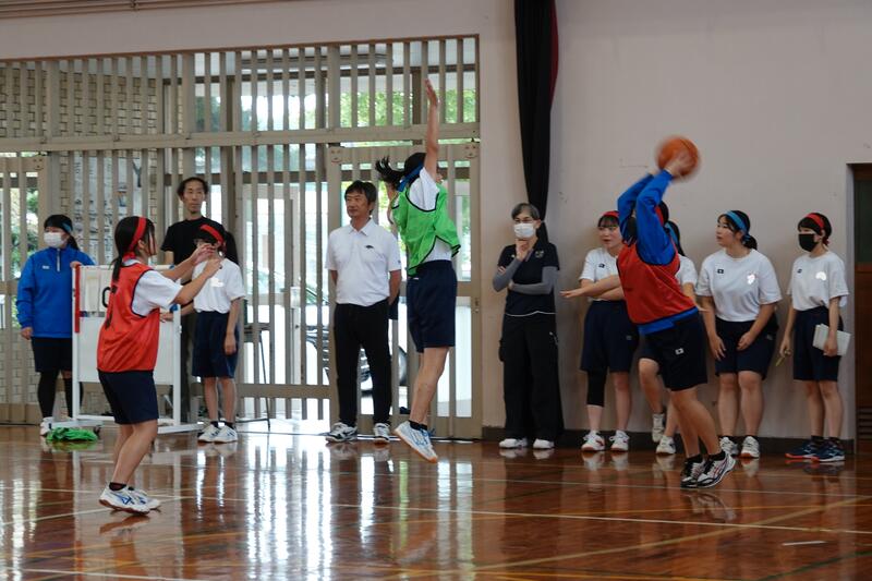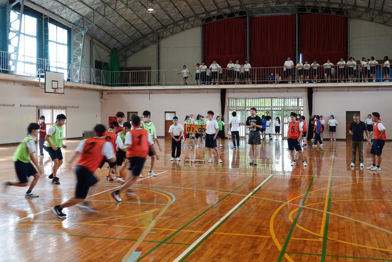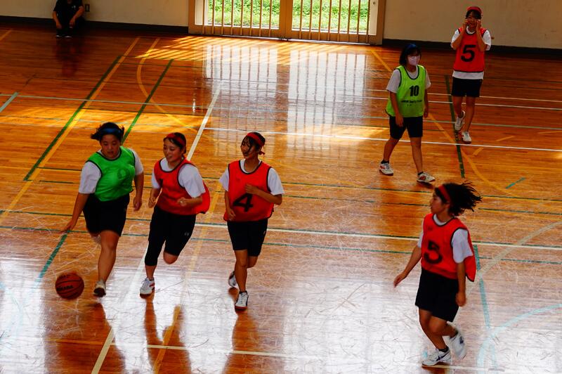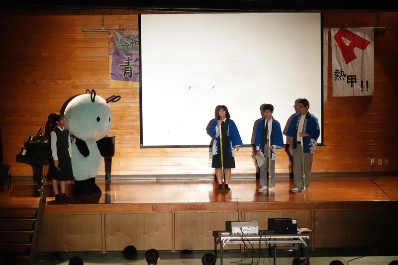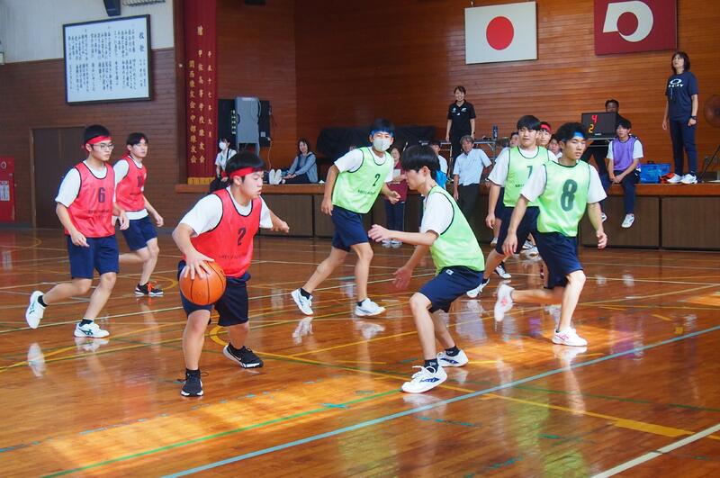 10月18日(金)スポーツフェスティバル(紅葉の陣)として、午前中にバスケットボール、午後にソフトバレーボールを行いました。午後の最後に選抜チームでの9人制バレーボール対決を行い、勝った青団と職員チームの試合が行われました。