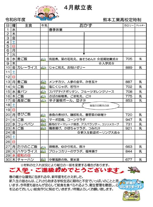 「給食室」よりお知らせです。