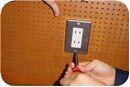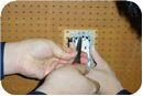 新しいコンセントに電線の色を間違えずに、差し込みます。壁に固定して完成です。
