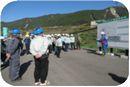9:10に学校を出発し見学場所①の立野ダム工事現場へ行きました。