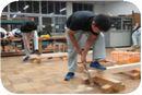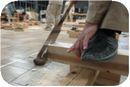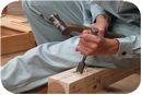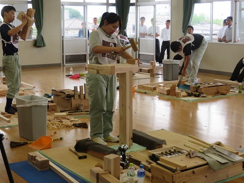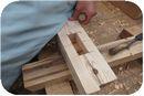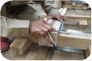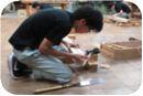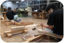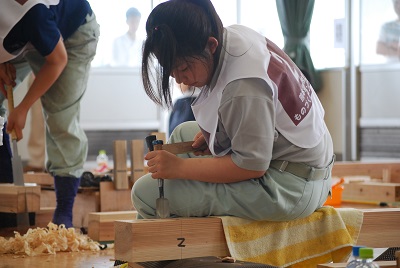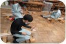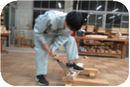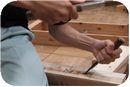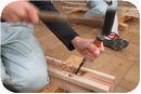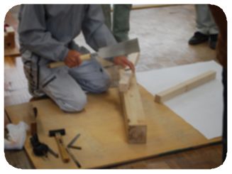 鑿(のみ)、鉋(カンナ)、玄能などの大工道具を使用し木材を