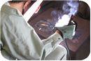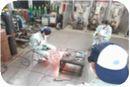 溶接です。可燃性ガスの燃焼熱で、ガス溶接機