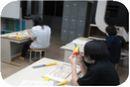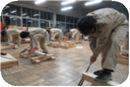 現在の作業工程は、木造軸組模型製作の準備、材料の説明を受け、