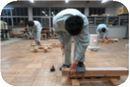 墨壺・を用いて、木材に加工する線など描くこと)を行い、