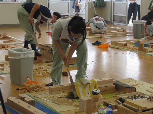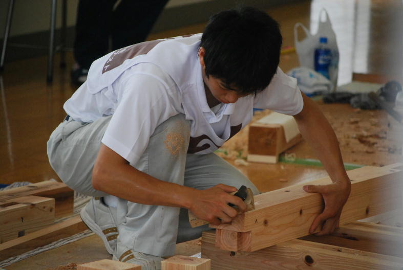 現役の大工さんたちでも難関とされる資格で、6時間半の試験時間の中で、木造建築の原寸展開図を作成し、木ごしらえ及び墨付けをした後、加工組立てを行うものです。なお、この資格は、職業能力開発促進法規定された国家資格で、建築大工技能士資格を持っていない者が、建築大工技能士と称することは禁じられています。