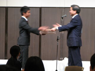 中村さんは、ものづくりコンテストの活躍や、バトミントン部での全国大会出場、日々の生徒会活動などのがんばりで表彰されました。