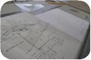 縮尺は1/20で、柱・壁の中心線を描くことからスタートし、
