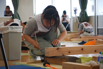 そのテーマの1つ「木造軸組模型」製作の様子です。
