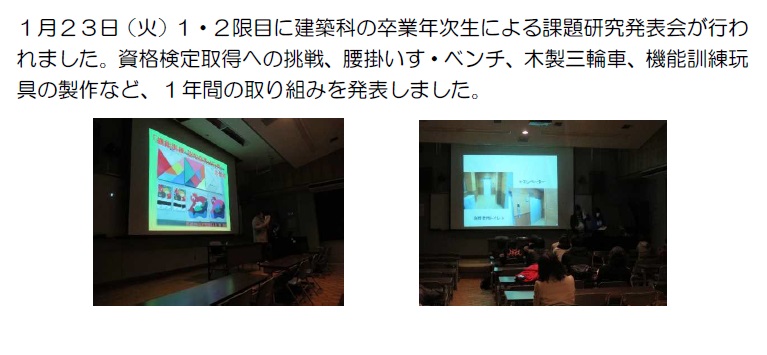 令和4年1月24日(火)に建築科4年生の課題研究発表会が