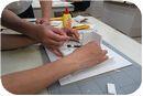その後、座面部分にはペーパーバンドを使用し、タッカーという